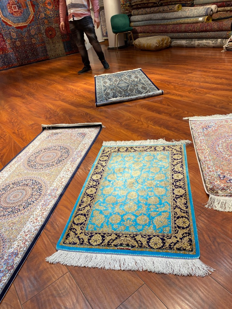 I got my fill of people watching in the Grand Bazaar and allowed my senses to be overwhelmed to the point of becoming vulnerable to swindling. Something happened to me, and I ended up buying not only a silk Turkish rug, but also 7 kilos of tea. I hope Customs doesn’t suspect me of drug dealing.