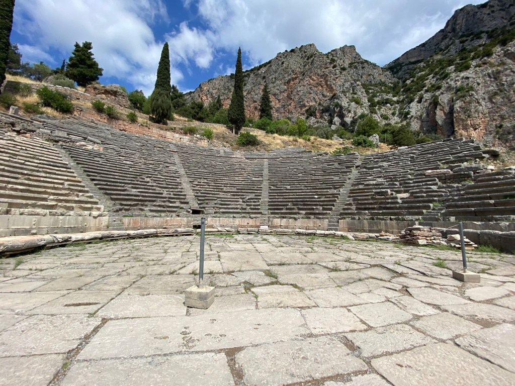Today’s excursion involved a 2.5 hour bus trip into the mountains to Delphi, where we visited the ruins of Apollo’s temple. It was here that prophesies and wisdom were delivered by a priestess called an oracle. The temple was built about 300-400 BC. A theater presented music, athletic and other performances.
