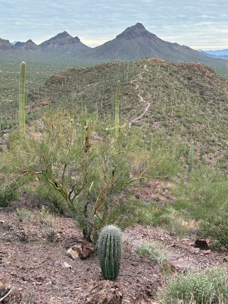 I more or less survived the holidays down here in Arizona, with a motley crew of orphaned friends. There were some pity parties of loneliness and regret over not having stayed in Oregon with my family. But I managed to find fellowship with a few good people who were family-less and we made it work. I ushered in the week between Christmas and New Year’s with a solo desert camping trip and climbed Brown Mountain (just west of Tucson). There was a Polish Christmas Eve party with my Contemplative Prayer group followed by a candlelight Unitarian service. Christmas Day included the new Avitar movie and Chinese food with Kathleen. New Year’s Day was spent hiking with John and his friends.